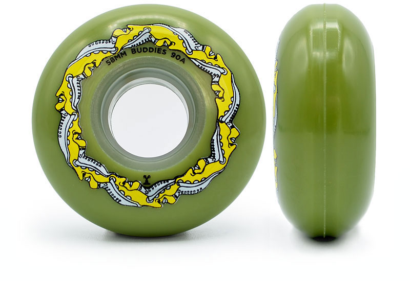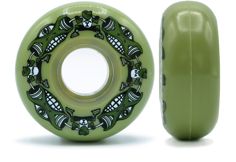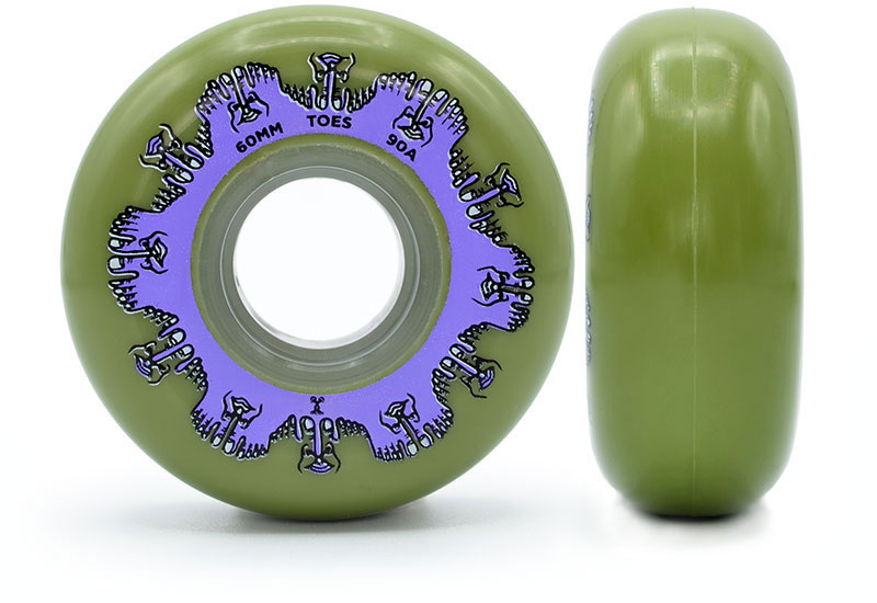 The MB Toes have become the standard wheel in our toolkit for anti rocker outers, flat 60 for park riding and inner wheels for Oysi frames. A versatile size and profile; can also be mixed with the 58/90 Buddies for a "Wacky Mode" inspired rocker. A 60/90 hardness will please many styles and (core and not core) riders. This size and hardness have become widely used over the decade, but beware, 60mm wheels are considered "big wheels" to some core riders. You might want to use smaller wheels if you're looking to gain more core points. Also, if you're going to skate flat 60, you better be dialled in.