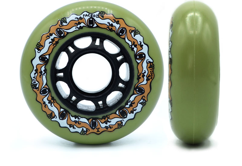 The MB Faces feature the most classic wheel size in rollerblading history, 72mm, which was popularized in the late 80s and early 90s by the legendary “do it all” Lightning TRS Skate. 72mm wheels have always inspired people to skate however they want while transcending stupid marketing categories and angry youth cults. This size became part of the MB toolkit when the groundbreaking Classic Oysi Frames were released in 2016. Now a size that inspires us to skate (however we goddamn want to) on the Lightning TRS, Roces 1992 and Aeon 72 (they also work great on the Wizard PR76). Faces come in the same trustworthy 87a urethane that made the MB Scribbles playful and comfy.