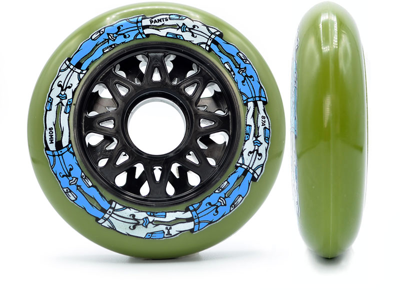 The 90/87 Pants are a wheel size used for a unique mix of slalom, speed, aggressive and freeskating. This size became MB canon when the very first NR90 Wizard Frame was created in 2014. Leon Basin’s BIG WHEELS 2 section dropped and completely changed what big wheel skating could be (if you know you know.) Used heavily in the Wizard Frame Testing series, ZONE, MB7 and MB8. These wheels are playful, fun, definitely not core (unless you’re skating them on Sola frames) and a 87a hardness for comfortable street riding and sliding. This is basically Todd’s pro wheel because he’s like... really really good on them. * Available at the original 90a hardness while supplies last.