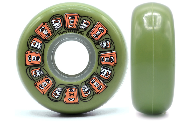 The MB Tapes feature an underrated 65mm "Goldilocks" wheel size that's not too big, not too small and absolutely not core. As a result of sharing the same profile and hardness, they pair perfectly with MB Toes on the Medium Oysi frame. On this setup, you'll experience a stable ride with a touch of rocker, 98% grind posture insurance, and fast, long-lasting 90a urethane. We also recommend skating MB Tapes on the Pottier FLAT frames, and if you want to get crazy, you can even skate them anti-rocker. Classic grind poses will happen, solid landings will be stomped, and positive movement emotions will be felt on these wheels.